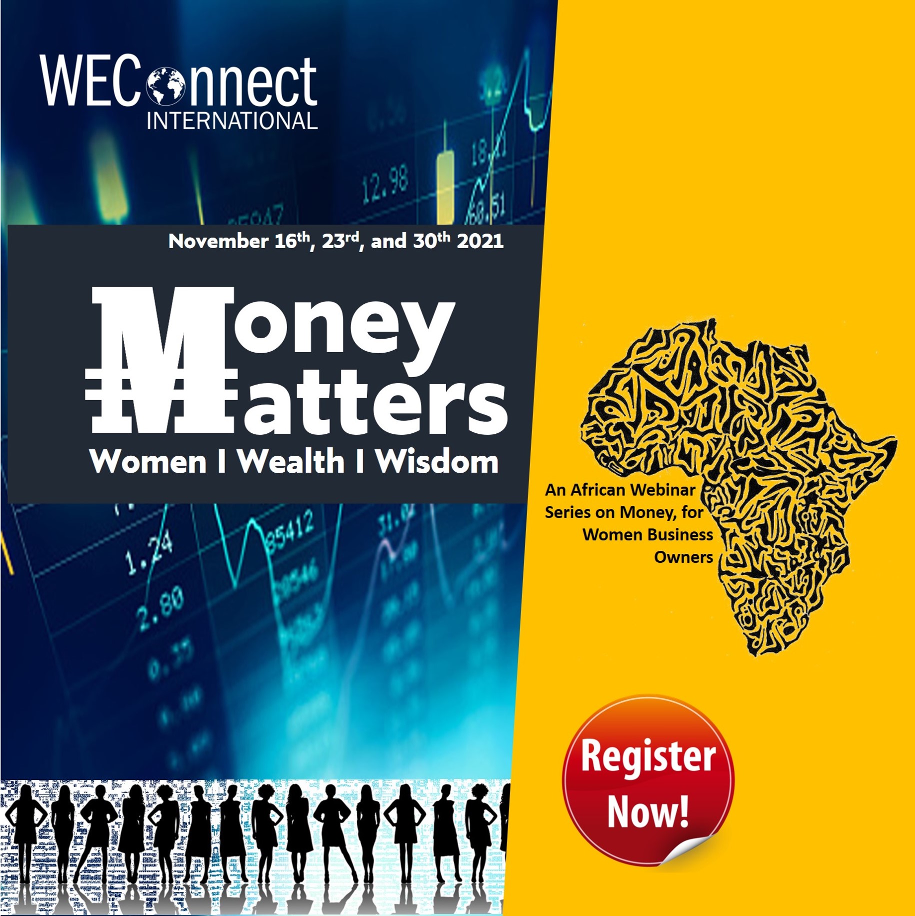 Women Business owners in Africa historically have identified finance as a major challenge. While access to finance is one issue, the understanding of how to effectively handle the money in a business is critical. Money Matters (Women, Wisdom and Wealth). An enlightening 3-part Capacity Building Series for African Women Business Owners with laser Focus on Financial Management. Revolving around topics that were identified by a cross section of seasoned Women Business Owners and Subject Matter experts that have in-depth regional experience in the topics, Money Matters is designed to effectively propel the businesses of participants forward financially.