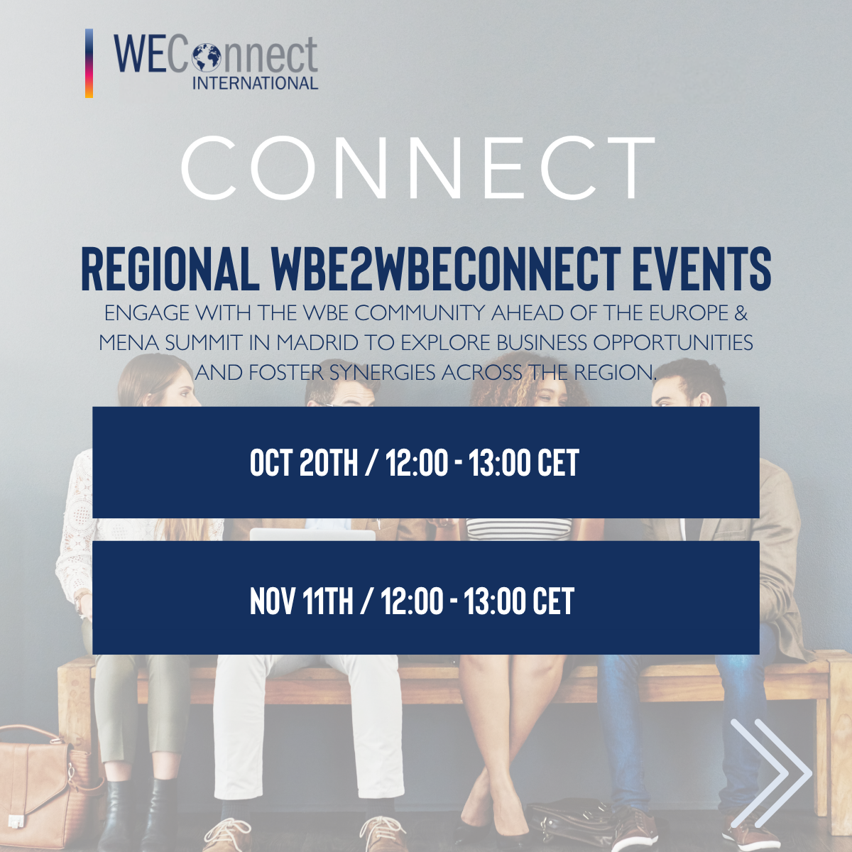 WBE2WBE Connects aims to strengthen women-owned businesses by encouraging collaboration and partnerships among WBEs. It is designed as a conversation among all participants, where each woman has 1 minute to deliver her pitch, followed by feedback from the group.