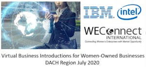 ONLINE, July 2020 — IBM and Intel, WEConnect International corporate members, invited women-owned businesses (WOB) in the DACH region to participate in a series of virtual business introductions that took place in July 2020. Participants included a mix of representatives from 19 corporations, including IBM, Intel, their tier 1 suppliers, other WEConnect International corporate members and WOB, as well as the WEConnect International team in Europe. During each session, 41 WOB had the chance to present a two-minute introduction of their business based on “Gelungene Selbstdarstellung in zwei Minuten” training session that IBM provided in June. There were three different sessions focused on ‘Marketing, Communications and Travel,’ ‘Professional Services and Consultancy’ and ‘Technology and Related Services.’